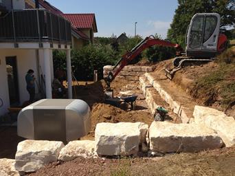 - Erstellen von Natursteinmauern ◦ sonstige Baggerarbeiten mit 5to Bagger