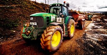 Gerade in unwegsamem Gelände kommen unsere Traktorgespanne zum Einsatz - Wo LKWs an ihre Grenzen kommen, setzen wir an